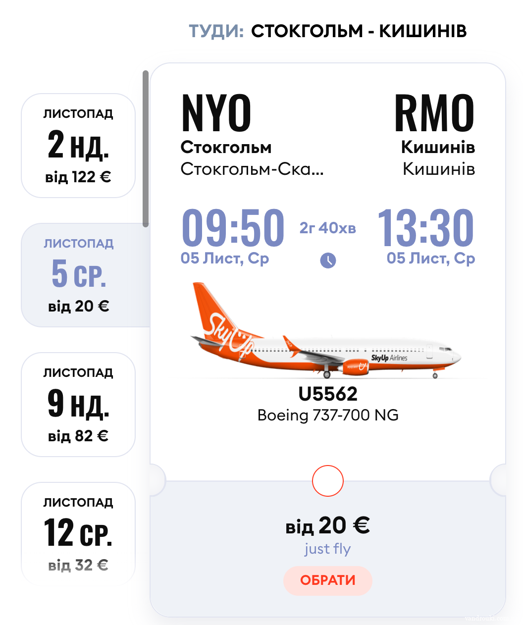 На сайте SkyUp прямо сейчас можно купить авиабилеты по различным направлениями всего от 20 евро в одну сторону из/в Кишинев.